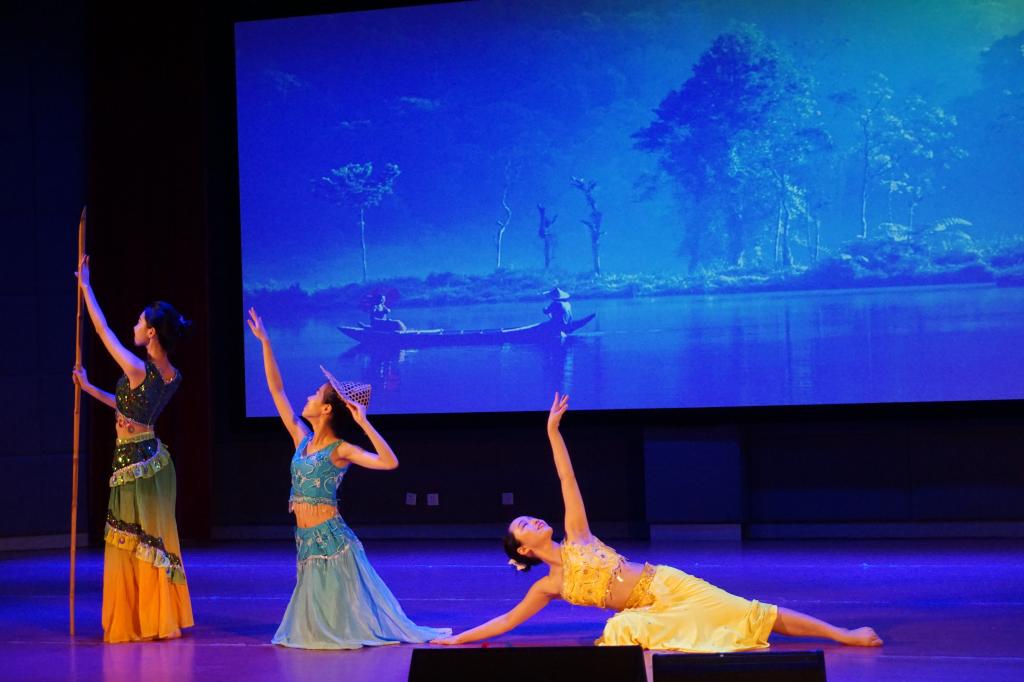 在曼兹乐队带来的歌曲串烧的优美旋律中,晚会拉开序幕。整场演出青春洋溢、惊喜爆棚:中文联唱 《岁月神偷》、相声 《满腹经纶》、民族舞《邵多丽》、爵士舞《 闪亮皮革厂》……精彩的演出点燃了全场观众的热情,阵阵欢呼和掌声在博学厅内萦绕不绝。由刘燕老师和苏衍同学合唱的一曲《屋顶》更是将现场气氛推向高潮,同学们更在微信墙上高呼“女神”。最后一个节目,晚装走秀《我在闽侯上街患过伤风》在轻快的舞步中给晚会画上了圆满的句号。