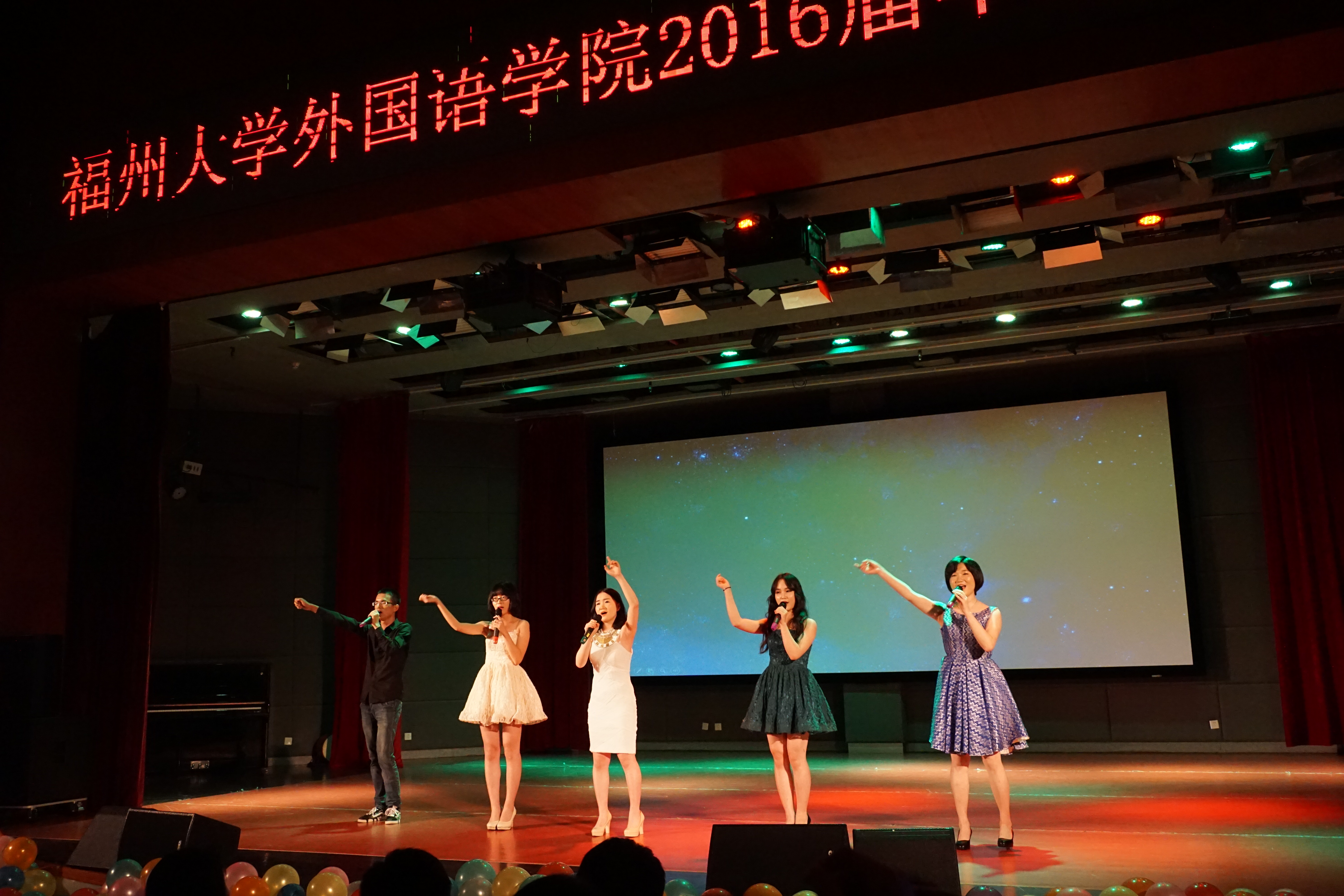 6月13日晚,福州大学外国语学院2012级毕业晚会《青春有你,后会有期》在图书馆博学厅如期举行。院党委倪朝兴书记、院党委周强副书记、团委林昕书记、各级辅导员和相关教师莅临本次毕业晚会。