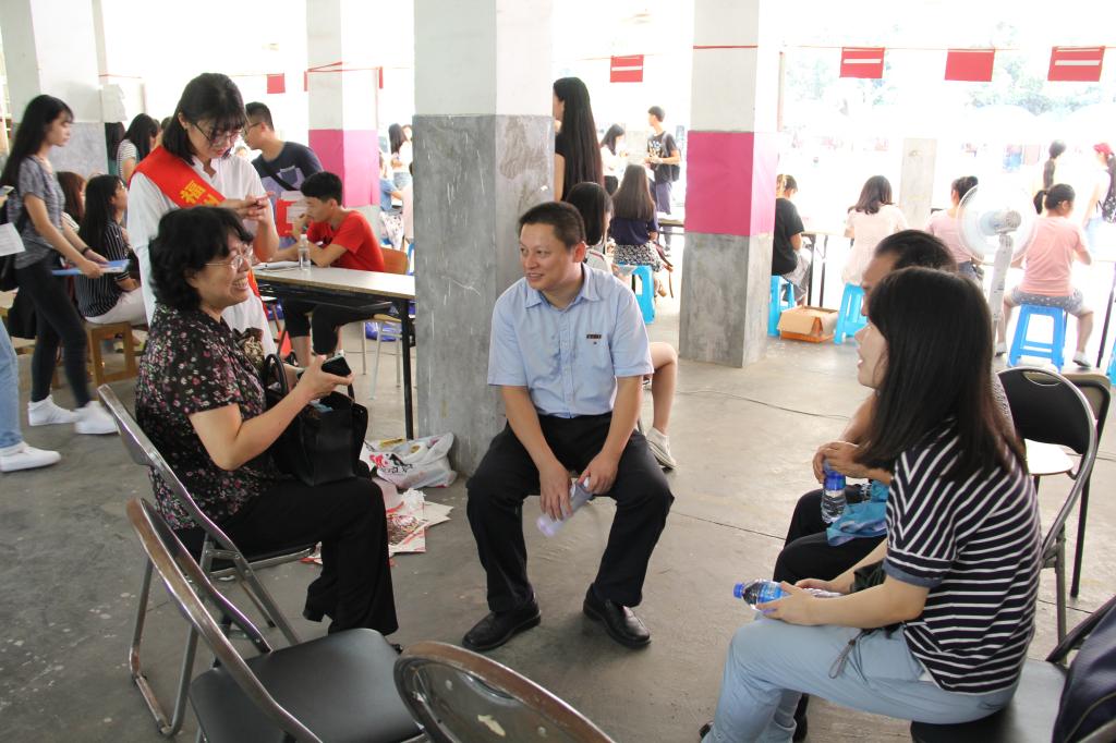 院长潘红教授、学院党委周强副书记与研究生新生及其家长交谈