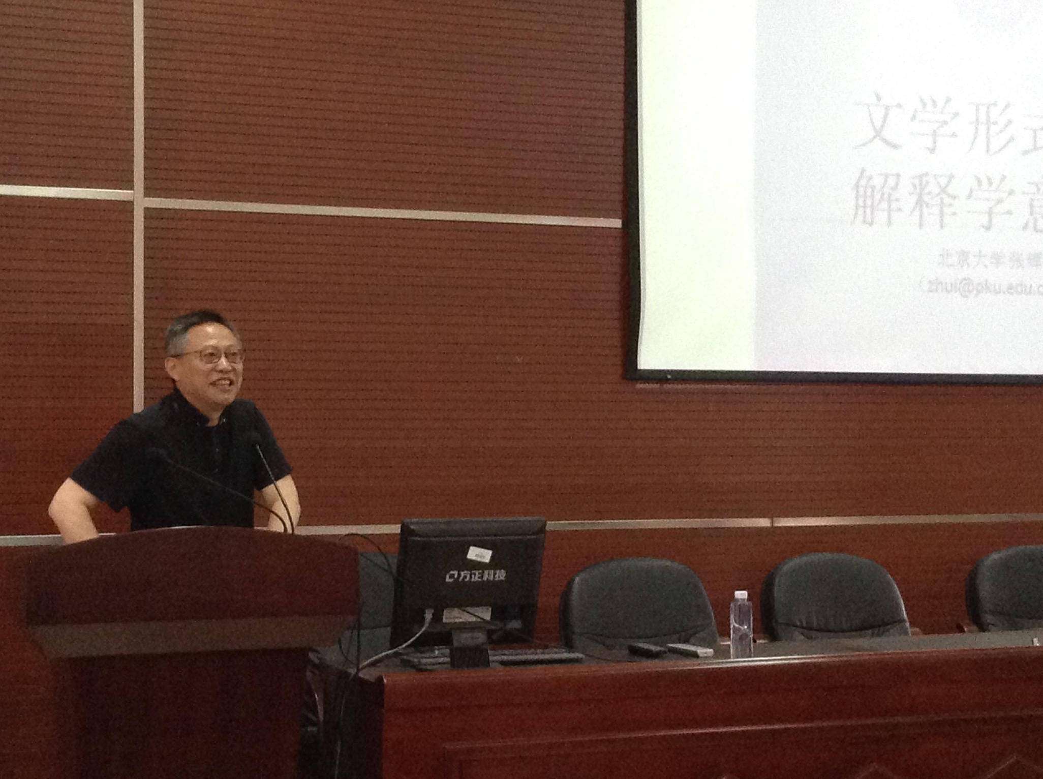 张辉博士以“形式”和“意义”两个问题为主线贯穿整场讲座。张教授特别指出,罗兰·巴尔特的“作者之死”影响了诸多文学研究,然而,“作者之死”在重视“文本形式”的同时常常导致“过度阐释”的问题。文学文本的分析过程,应是研究者与“文学形式”及“作者的方式”对话的过程。就此而言,张教授提出,“文学形式”具有了“形式”与“作者”的双向的“解释学意义”。