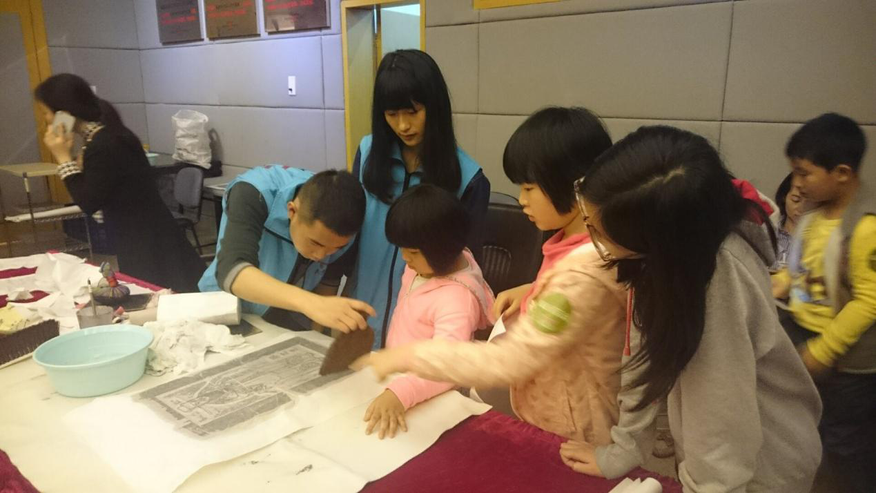 支部成员帮助活动参与者拓印