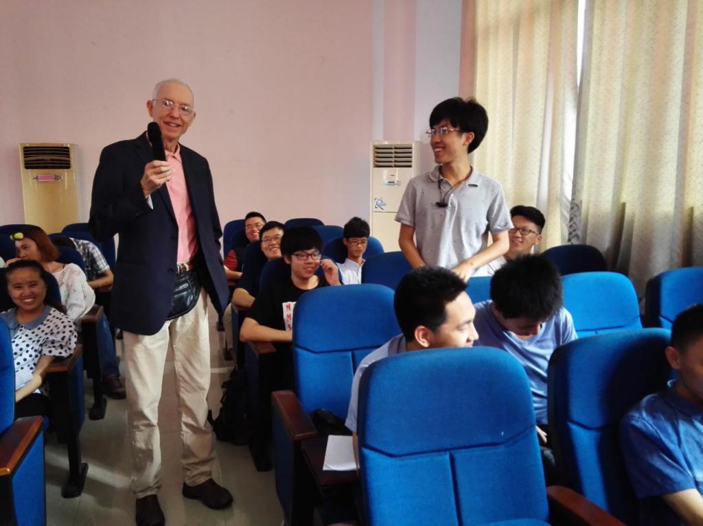 讲座开始,托马斯博士为大家播放了一段介绍南阿拉巴马大学的视频短片,展示了南阿拉巴马大学优美的校园环境、完善的教学设施以及良好的学习氛围,激发了同学们对南阿拉巴马大学的兴趣。其后,托马斯博士具体就学校的学位、课程、学校设备等多方面进行了详细的讲解。其幽默风趣的讲说赢得了在场老师及同学们的一致掌声。讲座最后,托马斯博士与现场师生进行了亲切的互动,回答老师与同学们提出的问题,并赠送了精美的小礼品。