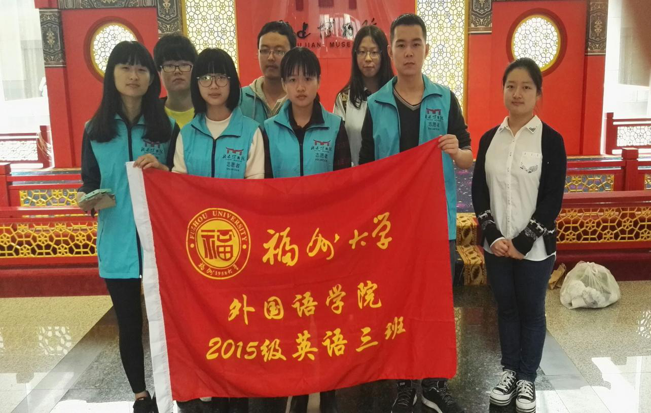 外国语学院2015级英语三班的八名志愿者在活动现场进行协助工作。