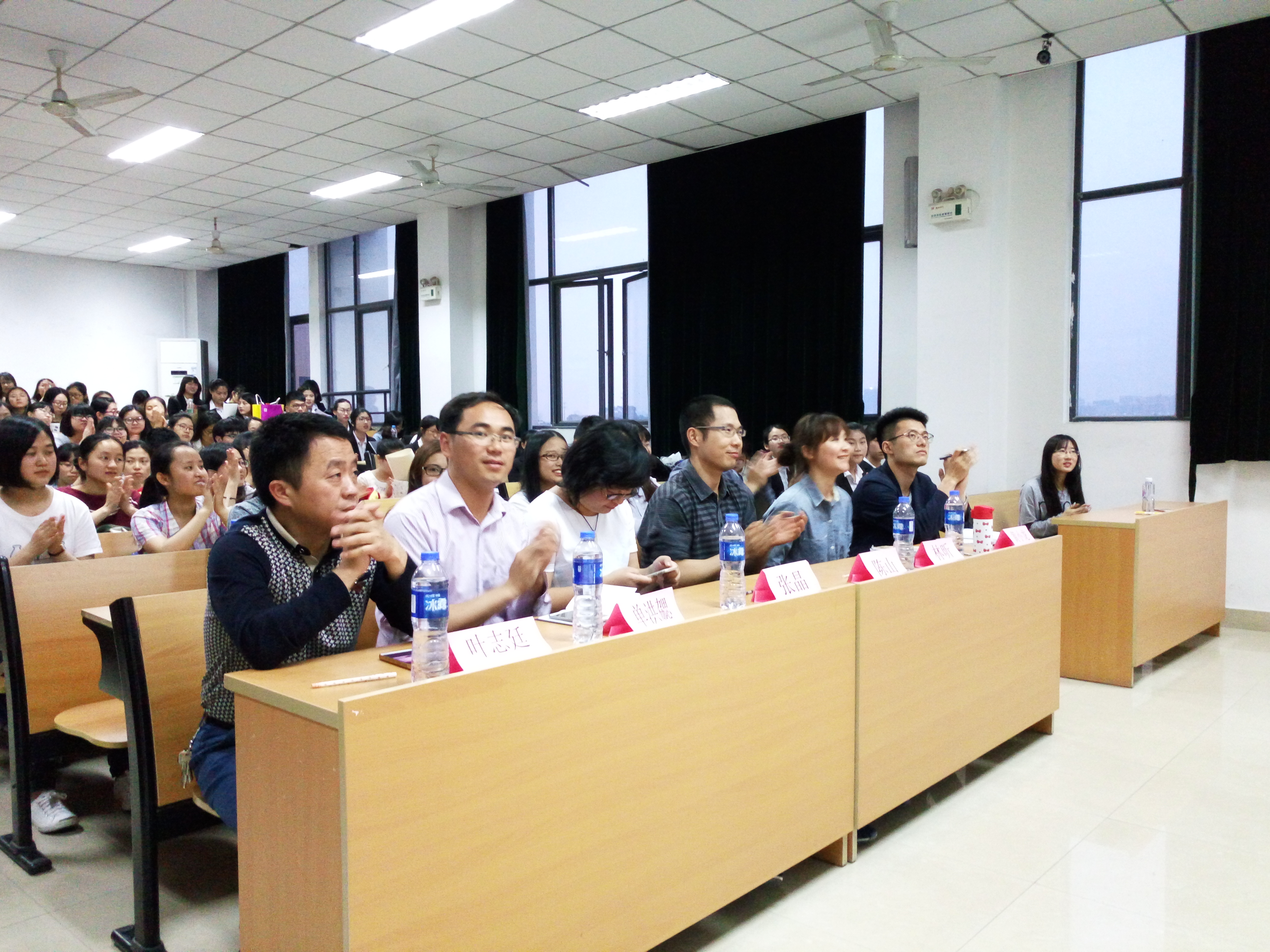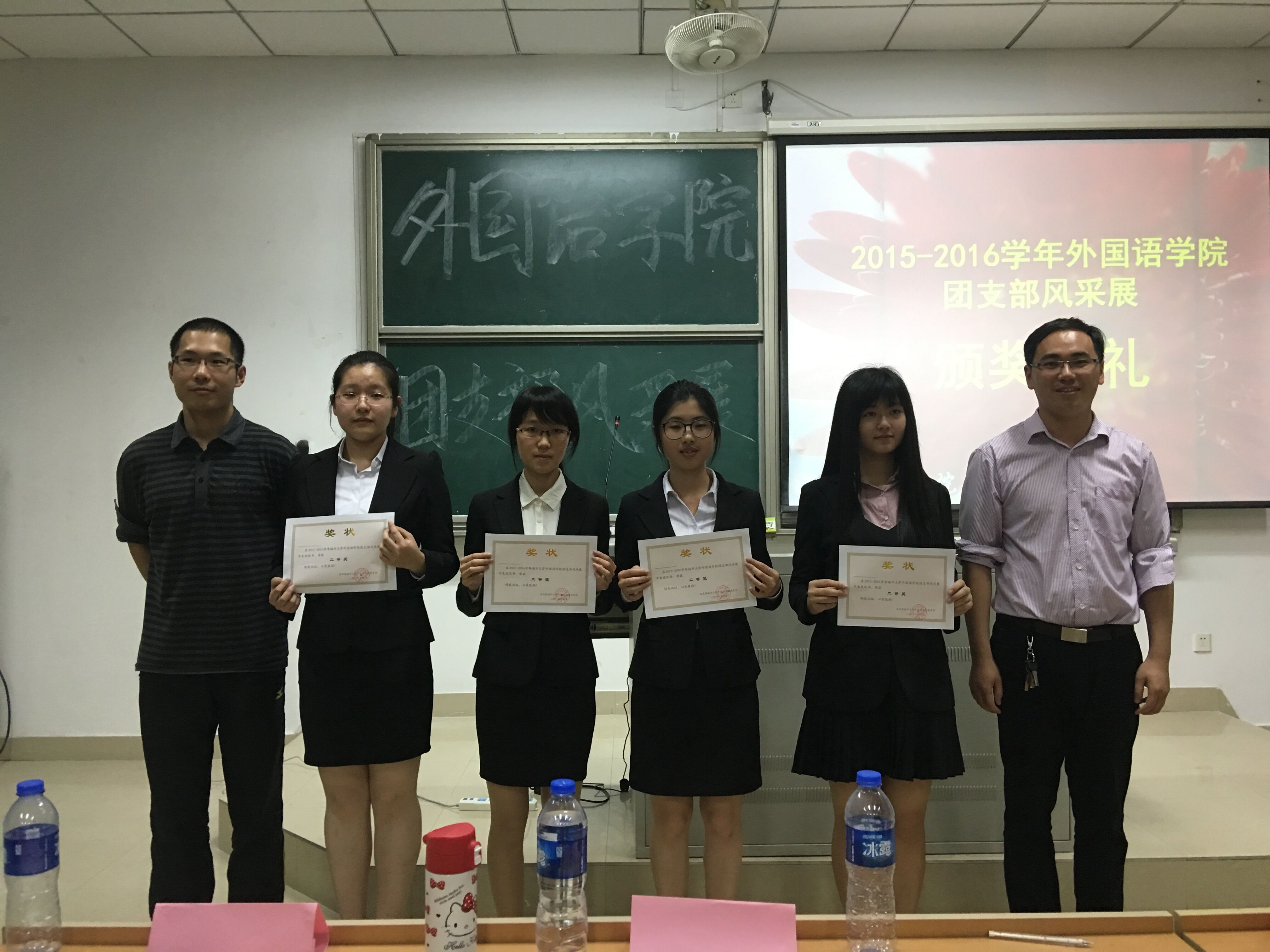 在比赛现场,我们看到了身穿正装的各位主讲人,她们个个都显得精神抖擞,青春洋溢。各参赛班级都极富创意,无论是可爱俏皮的马里奥,还是风格搞怪的王尼玛,都“亲”临现场为本次风采展加油喝彩,他们用“易”青春的态度对待本次风采展,使得整个现场都洋溢着欢乐的气氛。比赛尾声时,陈山老师更是上台为本次风采展提供的宝贵的意见,陈山老师一番风趣的讲评,让各位主讲人更加清晰地认识到团支部在平时发展过程中与在讲演比赛中存在的不足,从而在今后更好地发展各团支部。本次风采展设置了两名一等奖,四名二等奖以及六名三等奖。最终14级英语二班团支部,以及14级英语三班团支部均以高分共同摘得桂冠。