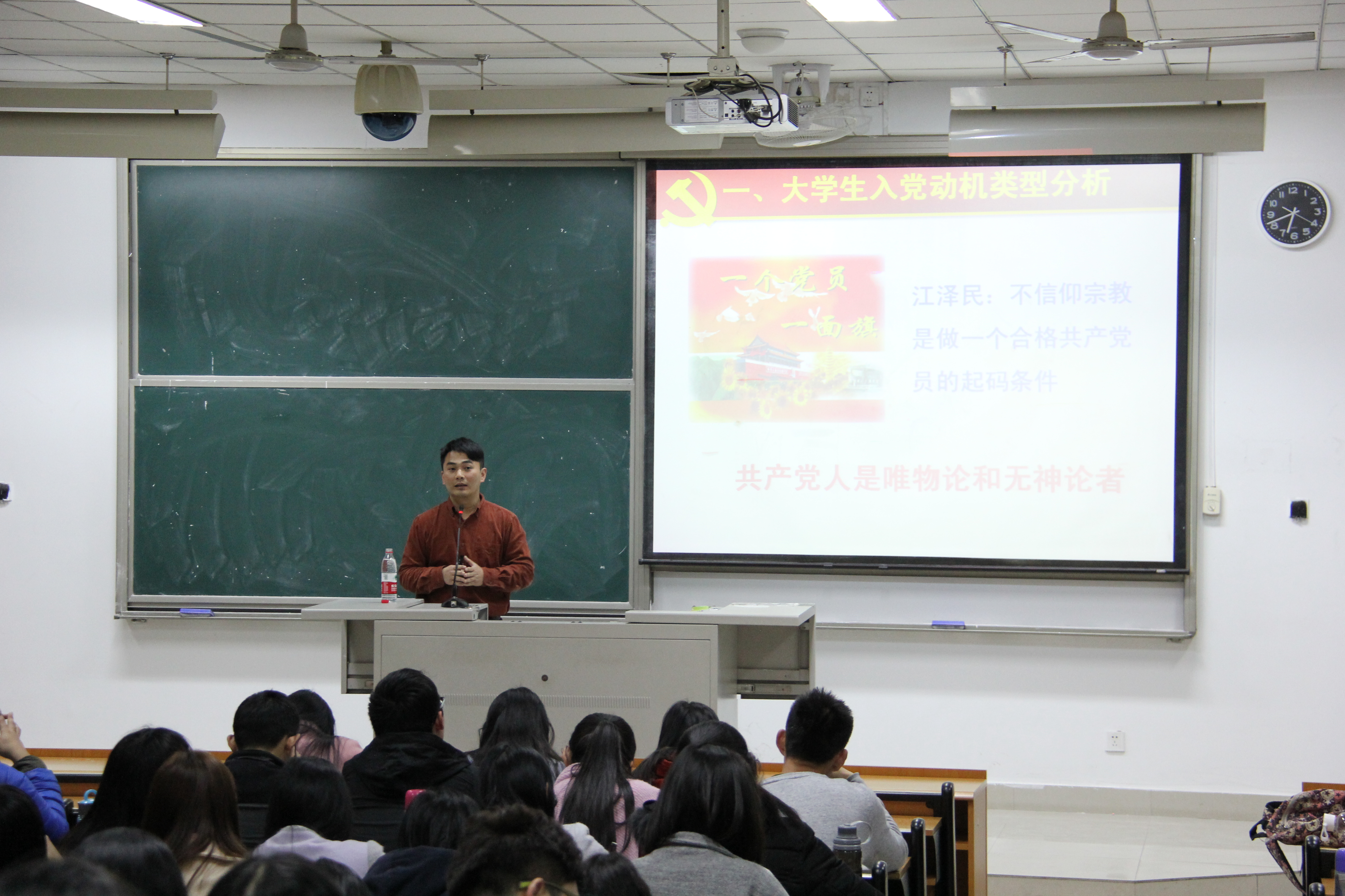 党委基层组织的设置情况,为入党积极分子引路。随后,柯老师分段讲解了入党动机的考察,其幽默风趣的语言搭配干练易懂的讲解,很快调动起党积们的积极性,师生互动增多,课堂愈发活跃,党积们的热情久久不散,课程圆满结束。
