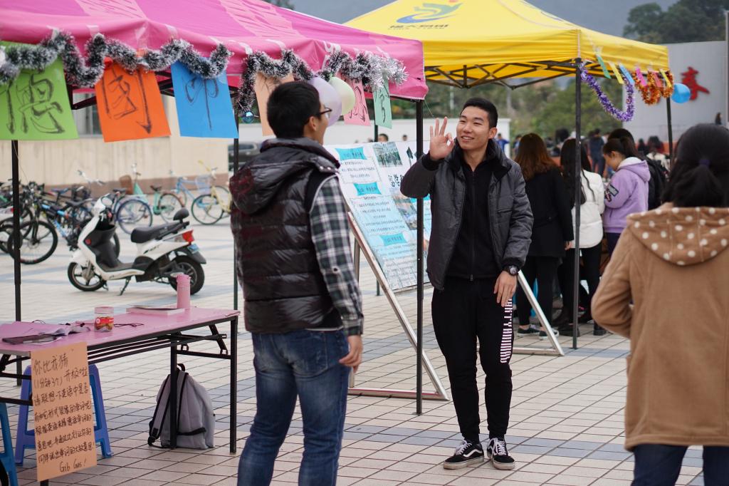 12月20日,由外国语学院举办的外语文化“易”条街活动于青春广场举行,带来了一场文化盛宴。院党委周强副书记与团委书记林昕老师、辅导员许震宇老师一同到现场视察了活动的进展情况。