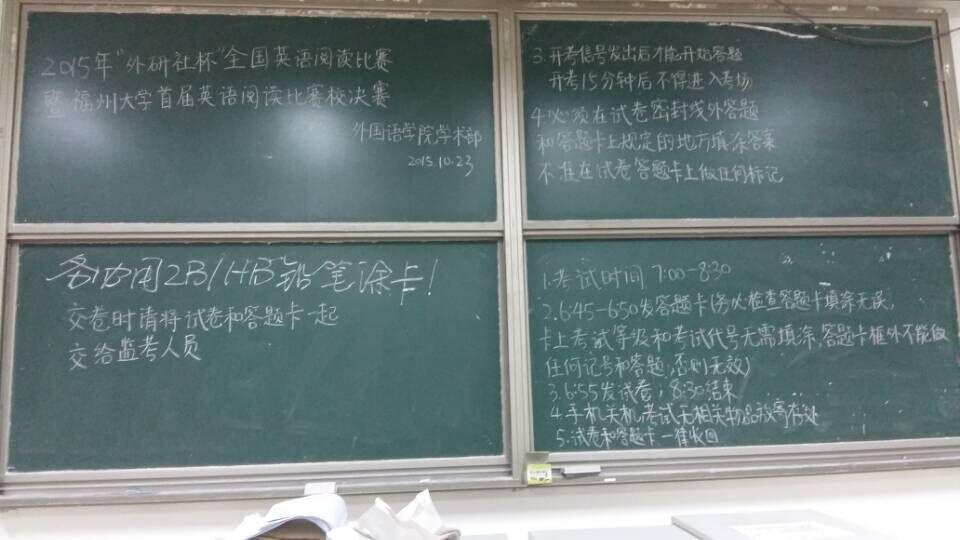 文一104和文二104、304、305、404、405举办。本次比赛由校教务处、学生处及校团委主办,并由外国语学院承办。参赛选手来自各个学院,由外国语学院学术部成员在本学院老师的指导下担任监考。