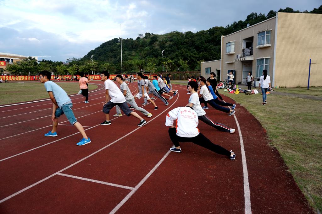 运动员们如火般高涨的训练热情。在经过简单的热身环节后,运动员们立即投入了紧张有序的训练中。操场上运动员们矫健的身姿随处可见。压腿、压肩、高抬腿、小跑步、交叉跑步……即使是枯燥重复的动作,他们的脸上也不见丝毫疲倦,反而常有笑容。不错,这是一支自信强大的队伍,一只不畏艰辛的队伍。他们的汗水定能浇筑出累累硕果,他们的努力终将换来绚烂的荣誉!