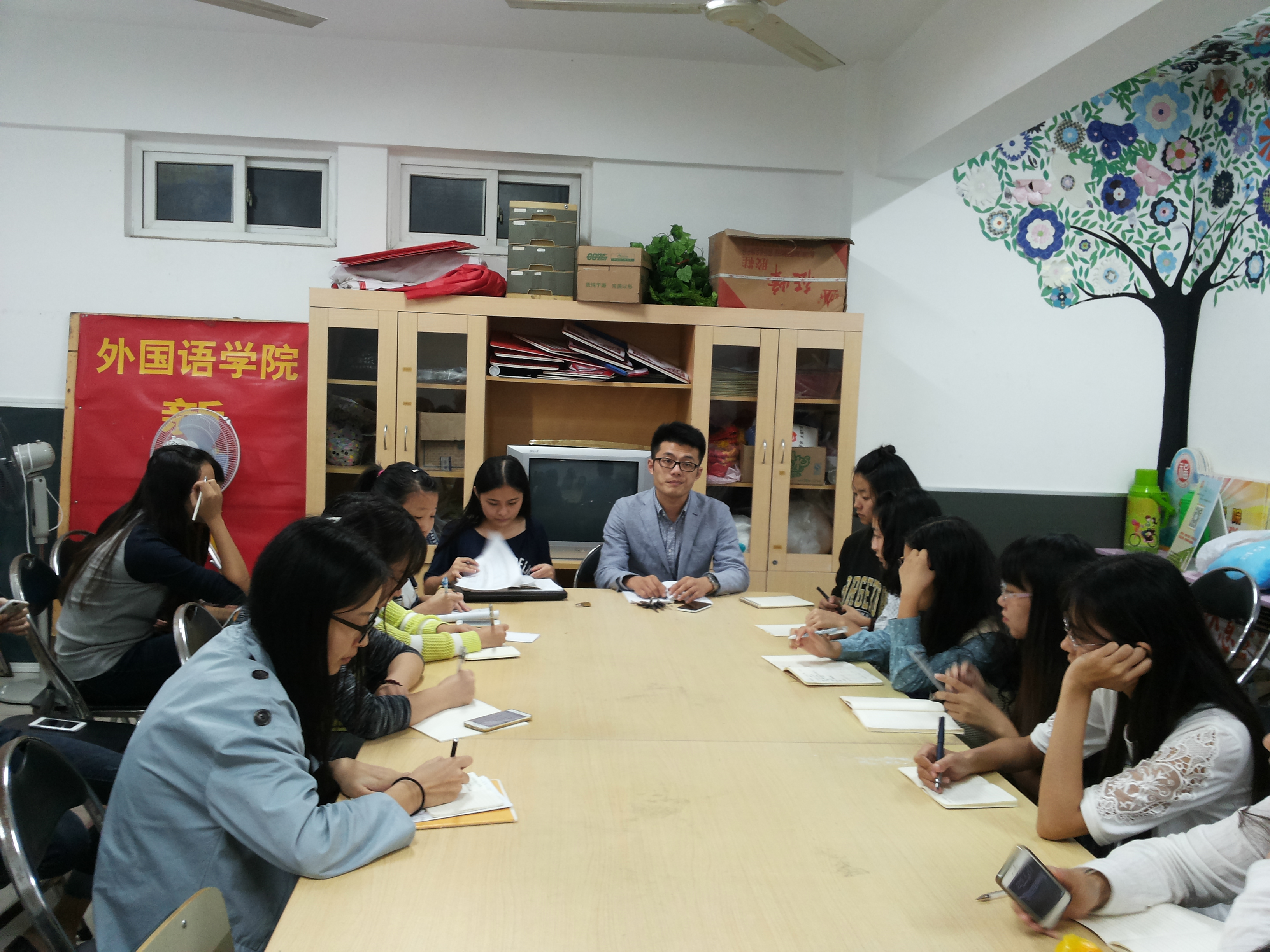 10月10日晚上9点,外国语学院在团委学生会活动室召开青运会前期工作安排会议,辅导员黄小龙老师主持本次会议,负责青运会志愿服务的13级各分组组长们参加了本次会议。