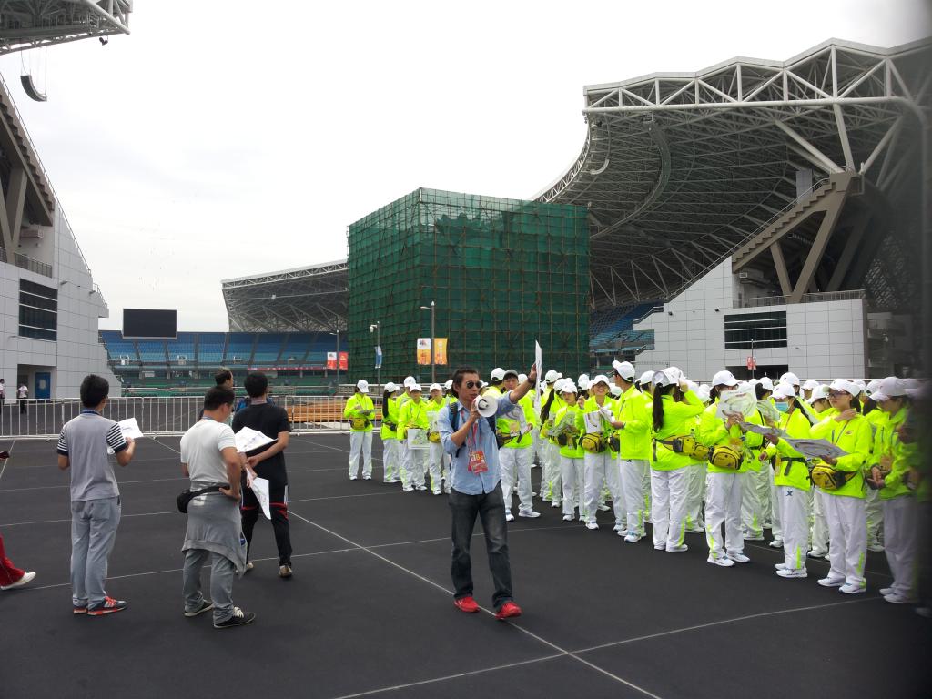 外国语学院13级志愿者们在辅导员黄小龙老师的带领下,前往福州市海峡奥体中心进行志愿者培训活动。