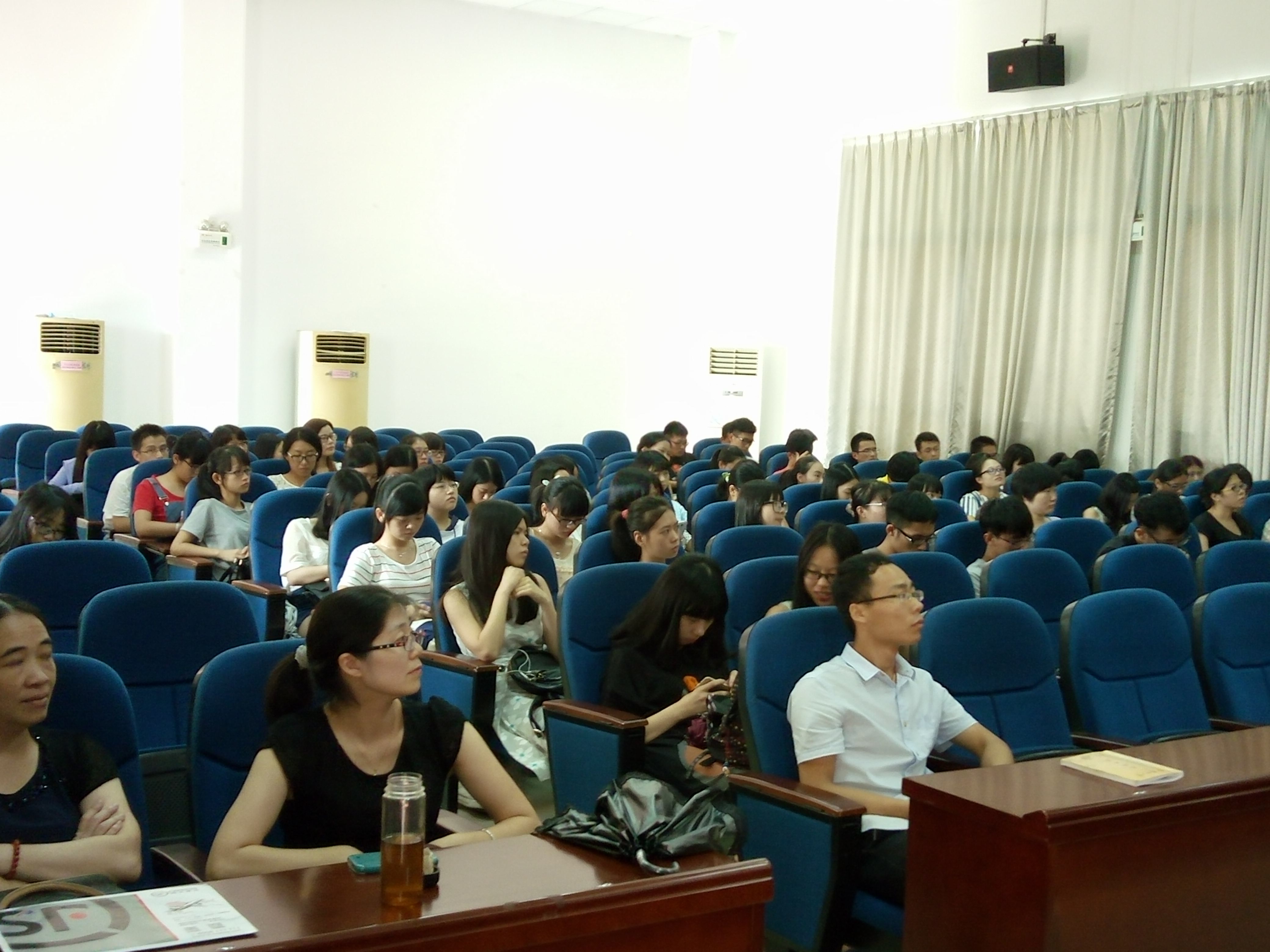 在考研热潮日益白热化的时代,钟晓文教授以对今年考研情况的介绍为始,首先分析考研形势的严峻性,建议学生要确定目标,力争上游;然后详细说明学校今年的保研政策,提到各个专业的推免名额有所增加,鼓励学生抓住机会,敢于迎接未知挑战。接着,陈小慰教授谈到,随着自贸区的发展,在外语人才急需的时代,就业压力虽有减缓,但也应提高标准与要求,以适应日益变幻的市场。并详细地说明读研的必要和应注意的问题,包括考研信心的树立、考研计划、备考心态的调整、作息时间安排,以及有关选择专业方向和复试等方面的一些心得。她说,考研是一件很辛苦的事,大家要做好充分的思想准备去应对可能遇到的困难。最后,徐冬梅老师以自身留学经历为例,为日语专业的学子讲述自己由最初的迷茫,到在进修中找到方向,一再强调终身学习的重要性,并告诫学生不要恐惧求学中的孤独,学会享受孤独等。
