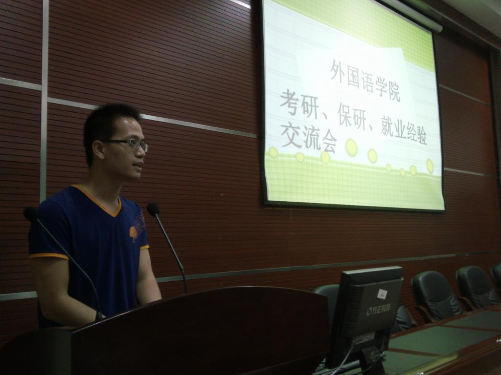 9月14日晚7点,由外国语学院举办的考研、就业经验分享会在院办会议室召开。出席大会的有辅导员李晓宇老师、许震宇老师,以及全体2012级学生。