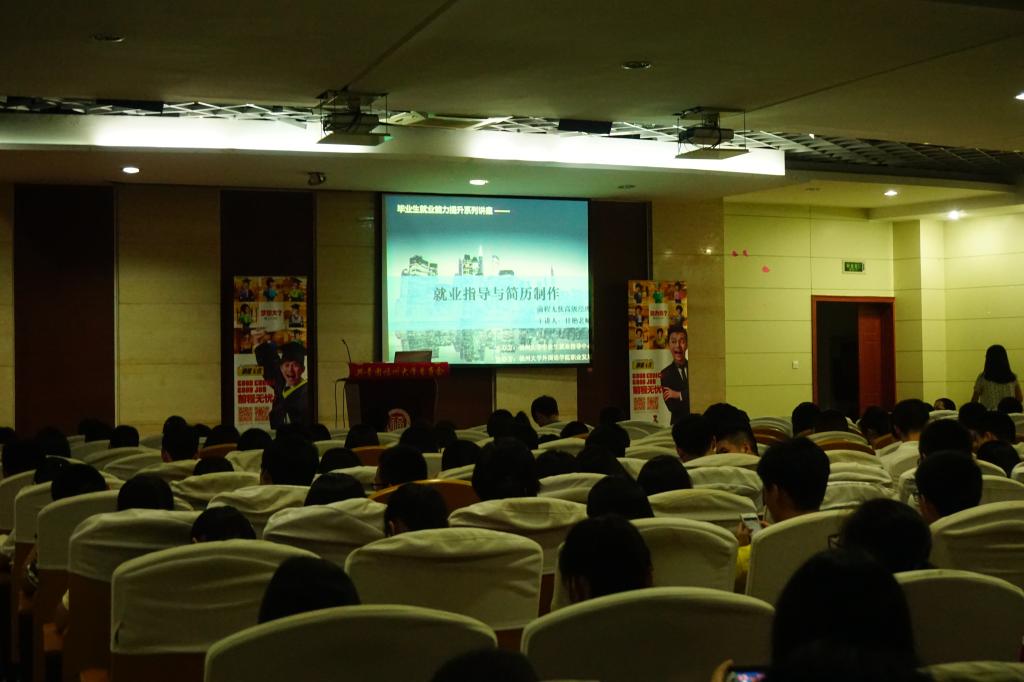 首先,主讲人甘艳老师以PPT的形式,向在场学生们介绍了一些关于简历制作的方法和技巧,并以其亲身经详细说明了在面试时的技巧及面试时应该注意的要点。甘艳老师声情并茂的宣讲博得了学生历们的阵阵掌声,她一针见血地指出了当前大学生的就业问题并加以分析,令学生们受益匪浅。在提问环节,在座的学生们踊跃地向甘老师提出了自己在面试及就业方面的疑问,并将现场的气氛推向了高潮。最后,甘老师与大家深入探讨了简历及面试方面的一些细节。本次讲座取得了圆满成功。