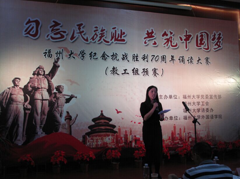 此次“勿忘民族耻,共筑中国梦”朗诵比赛以纪念抗战胜利70周年为出发点,分设教工组和学生组,在全校范围内组织学生与教师参赛,让曾经鲜活的抗争记忆重生,让Av在线观看