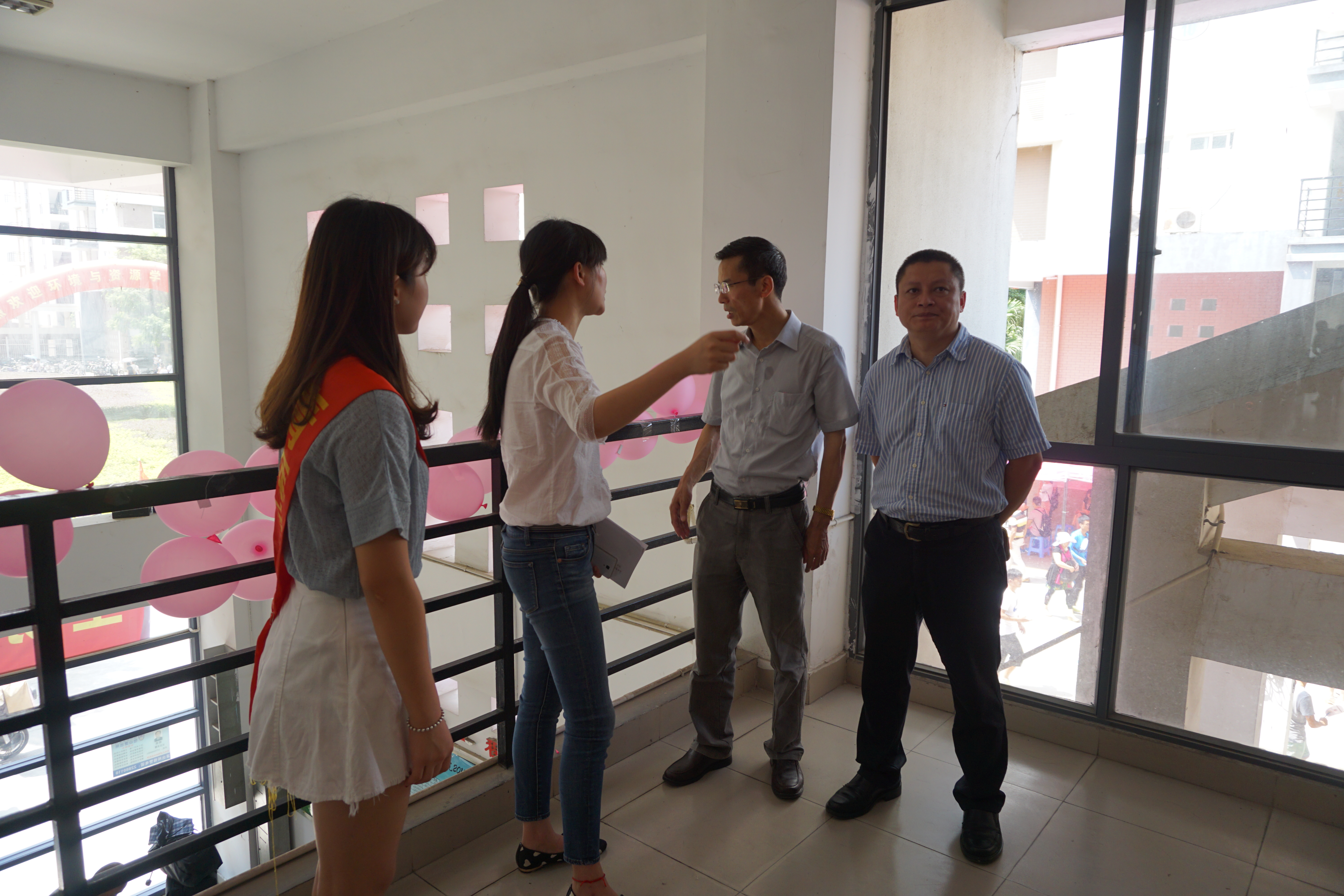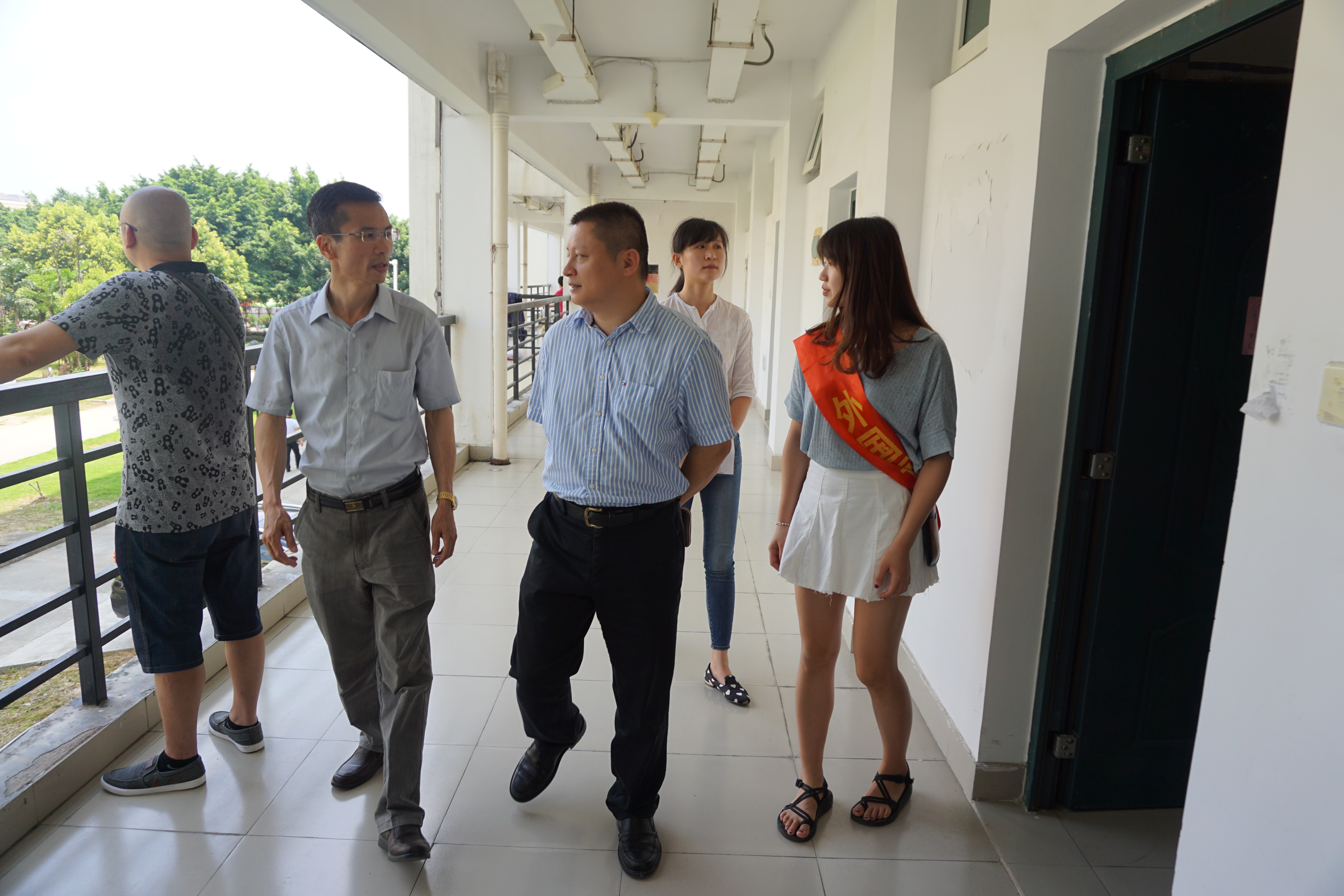 9月7日上午10时许,外国语学院党委倪朝兴书记、院党委周强副书记、团委书记林昕老师及各年级辅导员亲临迎新现场视察,向参与迎新的工作人员们表示慰问,并走进新生宿舍与新生及家长进行了亲切的交谈。