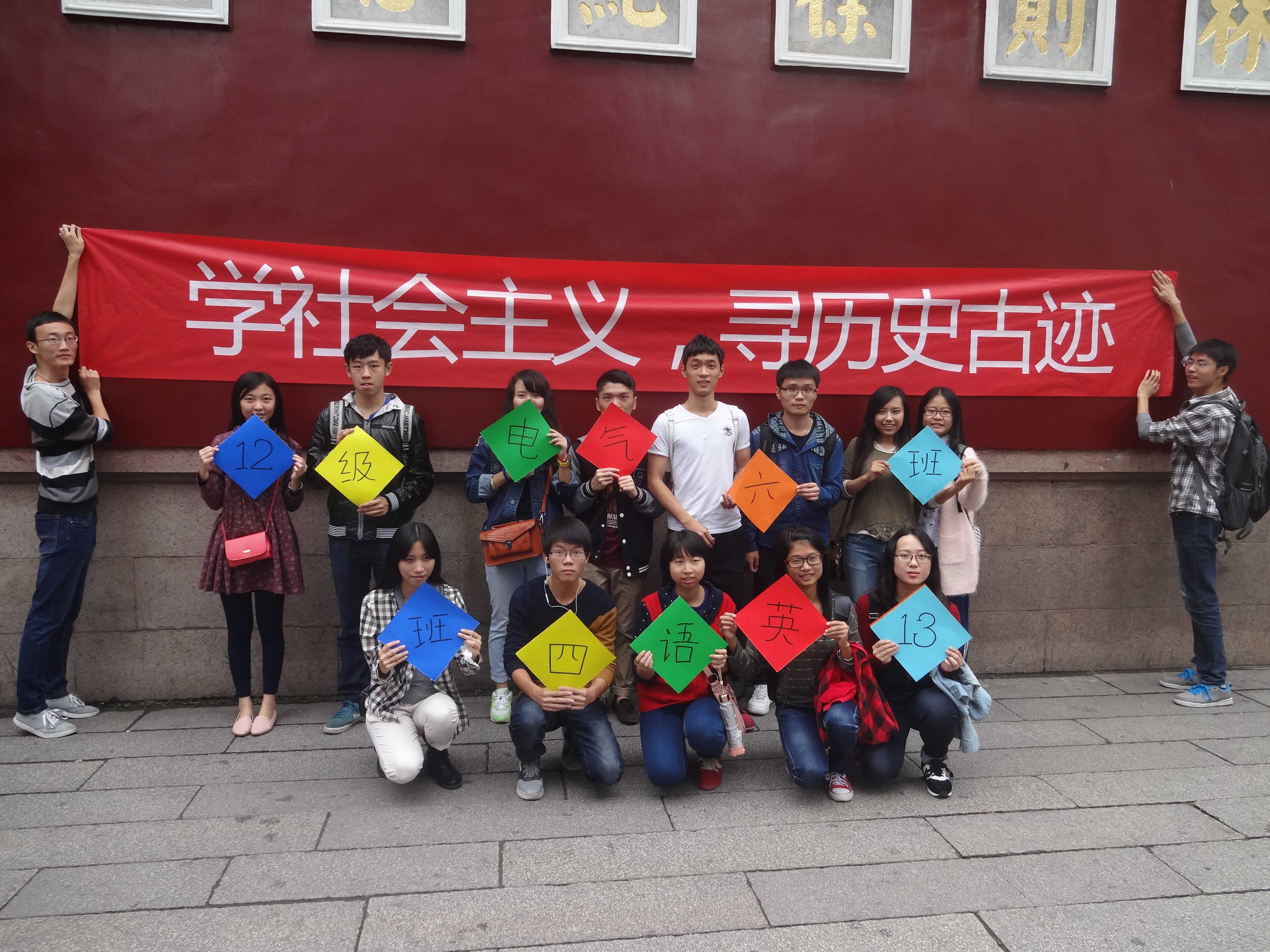 外国语学院13级英语4班携手12级电气6班,组织班级同学前往福州市三坊七巷参观林则徐故居,新四军办事处故址等地方,以期借由先辈们所传达的可贵精神,加深同学们对社会主义核心价值观的认识。该团立项活动走访了几处民族先辈的纪念馆或遗址,不仅加深了同学之间的友谊,更见证了先辈们身上存在的“爱国、敬业、法治、文明”等可贵精神,带领同学们深入学习社会主义和核心价值观,引导同学们实际拿出行动践行社会主义核心价值观。