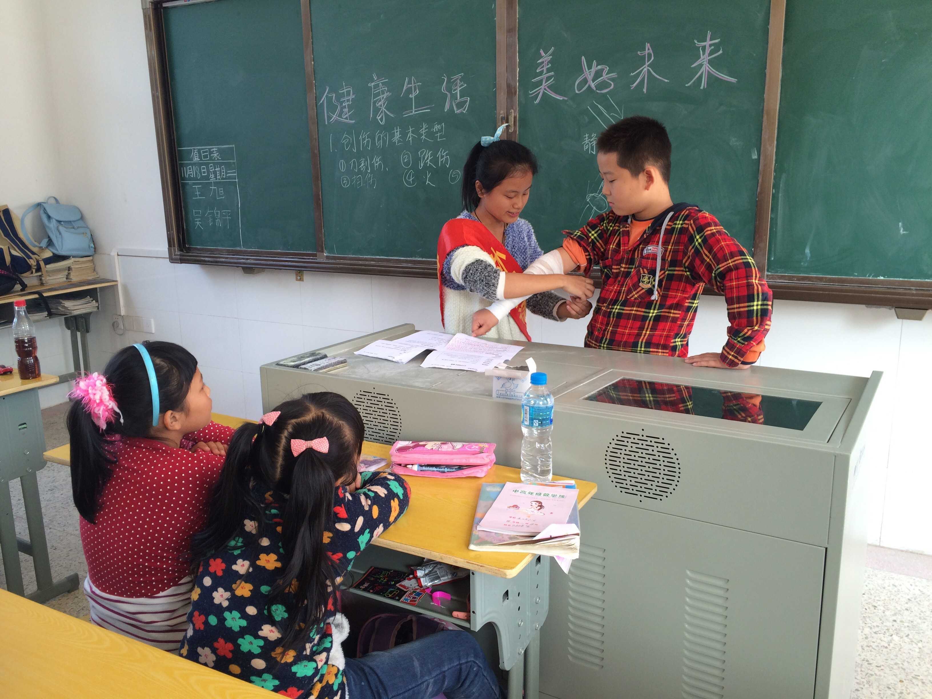 11月18日,外国语学院青年志愿者协会响应校团委的号召,携手创行团队于美岐小学开展了本次健康知识讲座义务支教活动,意在于加强农民工子女们的自我防护、健康教育和卫生保健等方面知识的教育,帮助他们创造更加健康美好的未来。上午10时20分,此次健康知识讲座的第一堂课准时开始。为增强课堂效果,志愿者们设计了互动环节,现场演示包扎伤口,让学生们对传授的健康知识有更直观的体验。下午14时,志愿者们进行健康讲座的第二堂课。经过早上的课程体验,学生们对此次授课更加感兴趣,更加认真听讲,课堂效果十分令人满意。外国语学院的志愿者们表示:“为了此次的“健康生活,美好未来”活动,我们精心准备了一周,期间多次试讲、反复练习,希望能通过这次活动,帮助孩子们养成健康的生活习惯。”关爱农民工子女,让他们感受到来自社会的温暖是此次活动最大的收获,契合了十八届四中全会推动社会公平的决定。