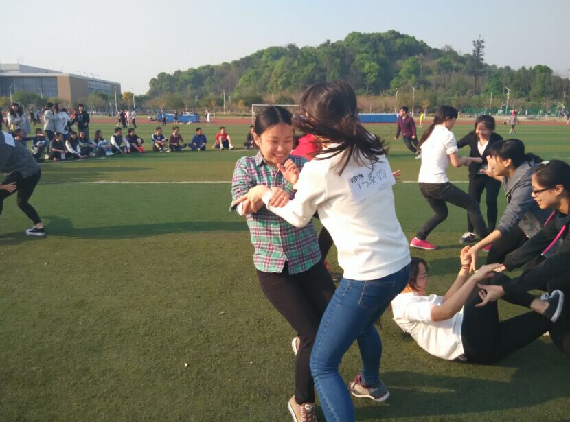 3月28日下午3时,外国语学院体育嘉年华系列活动的最后一个系列比赛——“趣味运动会”准时开始。趣味运动会设有“十人十一足”、“千足虫”和“撕名牌”三个比赛项目,需要各班参赛队员的配合以达到最佳成绩。运动场上时时传来“一二一二”的口号声,各班积极练习,彼此协调,比赛中互相鼓励,团结一心。比赛中,各班参赛队员互相提醒互相关心,在火热的赛场上,彼此之间的关爱在话语中沉淀。