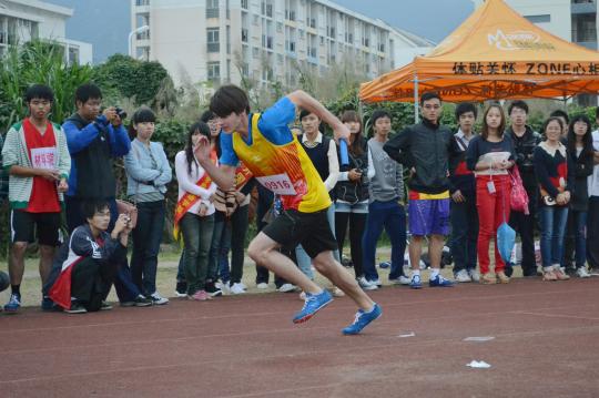 在本次运动会上,外国语学院的运动健儿们奋勇拼搏,突破自我。在红色的赛道上,他们尽情驰骋,似离弦的的箭般冲向终点;在黄色的沙地上,他们挥舞着充满力量的双臂,将沉重的实心铅球推成一道美丽的弧线;在绿茵场上,他们纵情一跃,腾空的身影划过横杆,稳稳地落在气垫上。他们用汗水与坚持,用拼搏与超越,写下了青春之歌。在场外,后勤队员与啦啦队员是运动员们的另一个化身,他们时刻关心着场上的赛况,送水搀扶,为运动员们加油呐喊,他们同样不知疲倦,心系外院。