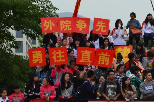 第41届田径运动会在旗山校区一区田径场举行,共有20余支来自不同学院的代表队参加了本次运动会。在运动场上,各学院健儿们奋力拼搏,争创佳绩,多项校运会纪录被改写;在运动场外,各学院的大本营也展示出了各具特色的展板,打出了为运动员们加油助威的标语,观众席不时传来啦啦队们激情四射的呐喊,整个运动场洋溢着运动的激情与青春的力量。