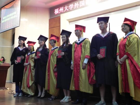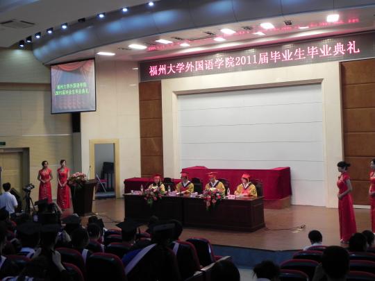 外国语学院2011届毕业生毕业典礼在模拟法庭隆重举行。此次典礼由外国语学院副院长潘红教授主持,外国语学院党委书记倪朝兴老师,院长陈小慰教授,副院长王平副教授,英语系主任苏翊翔老师等外国语学院其他老师、07届全体毕业生及部分学生家长代表出席了此次典礼。