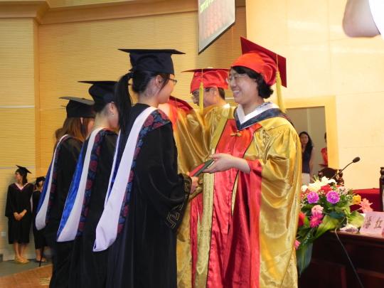 最后,在毕业歌中,书记、院长和两位副院长一同为毕业生一一授予毕业证书,学位帽流苏飞影,当流苏拨过的那一瞬间,辛勤与收获、青春与梦想荡漾在每一位学子的脸上。典礼仪式结束后,校领导、教师代表、毕业生们在美丽的校园内合影留念。