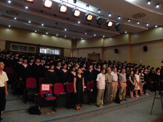 典礼在庄严的国歌声中拉开了帷幕。首先,党委书记倪朝兴老师在典礼上致辞,倪朝兴书记向即将告别母校、踏上新的人生征途的毕业生表示最热烈的祝贺,并对毕业生提出新的要求和殷切希望。一是勉励学生保持勤奋好学的学风,继续学习,充实自己以适应社会的要求,走在时代前沿;二是保持踏实的作风和求实的态度,在平凡的岗位中创造不平凡的业绩;三是谨记校训,秉承母校的优良传统,服务社会。演讲的最后,他祝愿毕业生在新的征程中鹏程万里,创造出属于自己的美好未来。