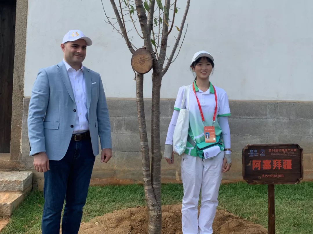 外语学院2019级笔译专业研究生黄紫菁同学陪同阿塞拜疆驻华政治参赞参加了“世遗林·碳中和”植树活动。前期外事礼宾组的志愿者总共演练了四次,虽然天气十分炎热,但是外宾与志愿者们都对这场活动十分期待。由于演练积累了丰富的经验,活动当天十分顺利,对接的外宾也特别热情,很快就把树种好了,并在签名牌上写下祝愿中阿两国友谊长存的寄语。“此次世遗林”植树活动充分彰显了“绿色世遗”的理念。