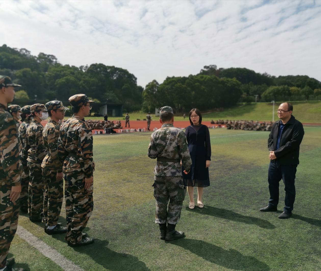 外国语学院党委程贞玫副书记、党委王三强副书记一行,深入军训现场看望慰问承训教官以及2021级全体参训新生。