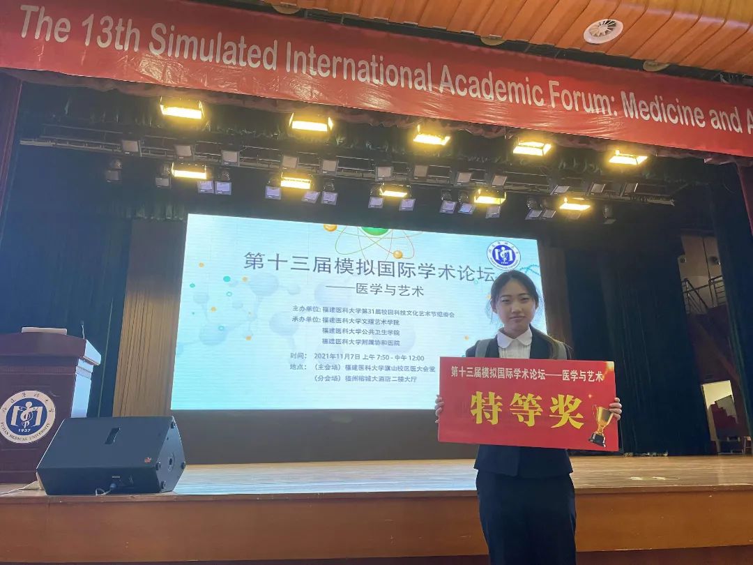 11月7日上午,在“2021年第十三届福建省模拟国际学术论坛 – 医学与艺术”演讲比赛中,Av在线观看 2021级硕士研究生林梦溪同学获特等奖。