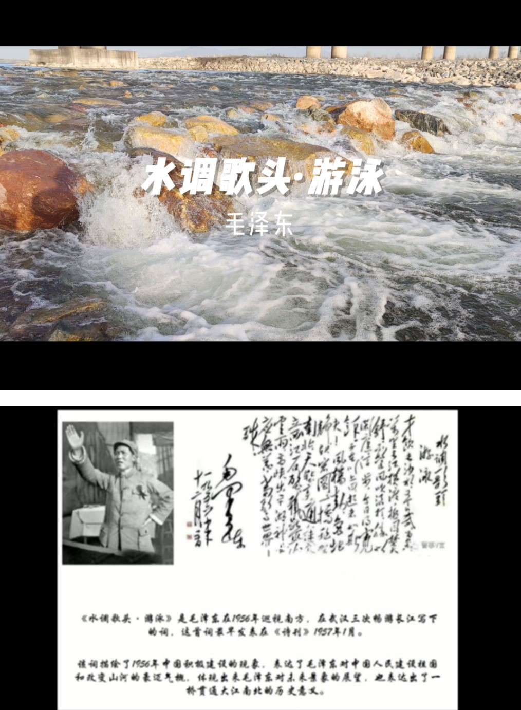 《水调歌头·游泳》是毛泽东同志1956年巡视南方,在武汉三次畅游长江时写下的词。该词描绘了祖国江山宏伟壮丽的图景,表达了毛泽东同志的壮志豪情。学子们以《水调歌头·游泳》日语版朗诵献礼中国共产党建党一百周年,一字一句,无不流露对中国历史生命力,祖国宏伟江山,风华建党百年的礼赞。