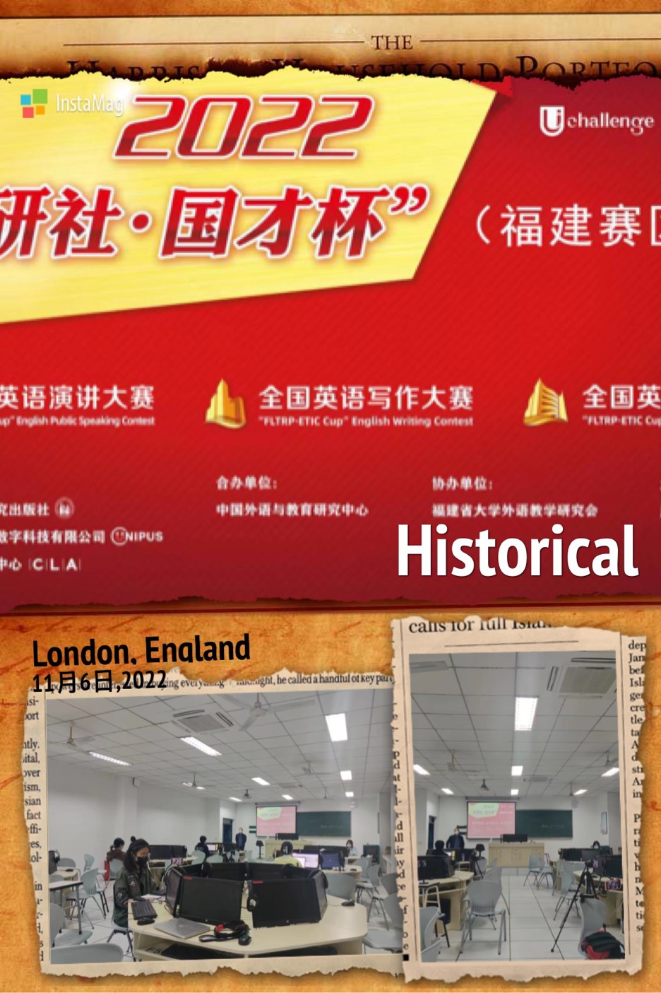 “外研社·国才杯”大学生英语挑战赛是由外语教学与研究出版社和中国外语与教育研究中心联合主办、北京外研在线数字科技有限公司和中国外语测评中心联合承办的大型公益赛事,包括全国英语演讲、写作、阅读三大赛事。本赛事凭借其权威性、学术性和专业性,大赛自2018年起连续五年入选教育部中国高等教育学会发布的“全国高校大学生竞赛榜”,被全国多地教育主管部门纳入省厅级比赛项目。