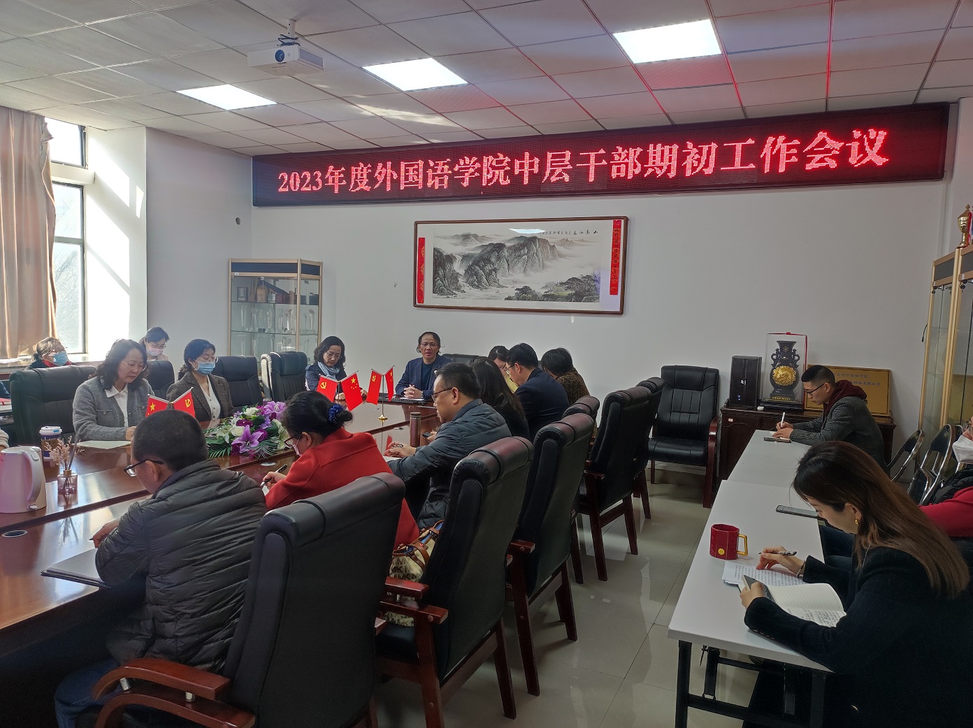 会上,钟晓文院长对学院2022年的工作进行了简要的回顾,并从教育部审核评估工作、学科建设、硬件建设、数字赋能、人才内培外引、平台建设、国内外合作、公共英语和外语专业课程建设等方面对2023年的工作进行了部署安排。他强调,学院中层干部要立足本部门实际,积极探索合作,建立科学有效的管理体系,全力推动学院各项重点工作高质量快速发展。