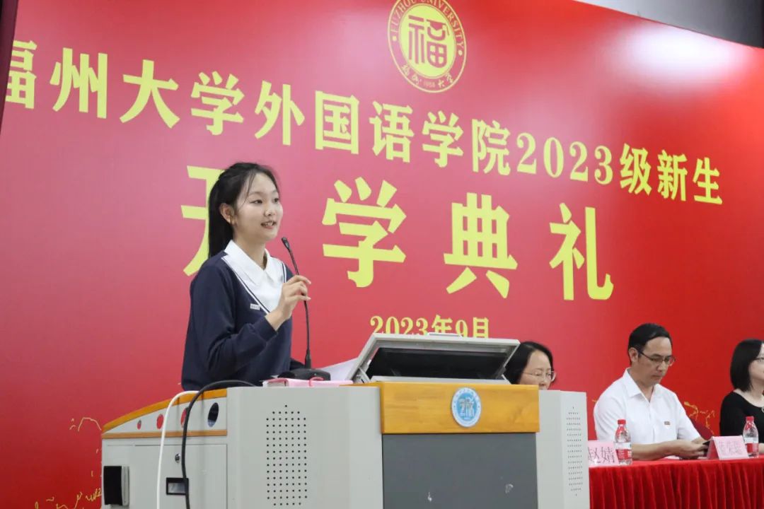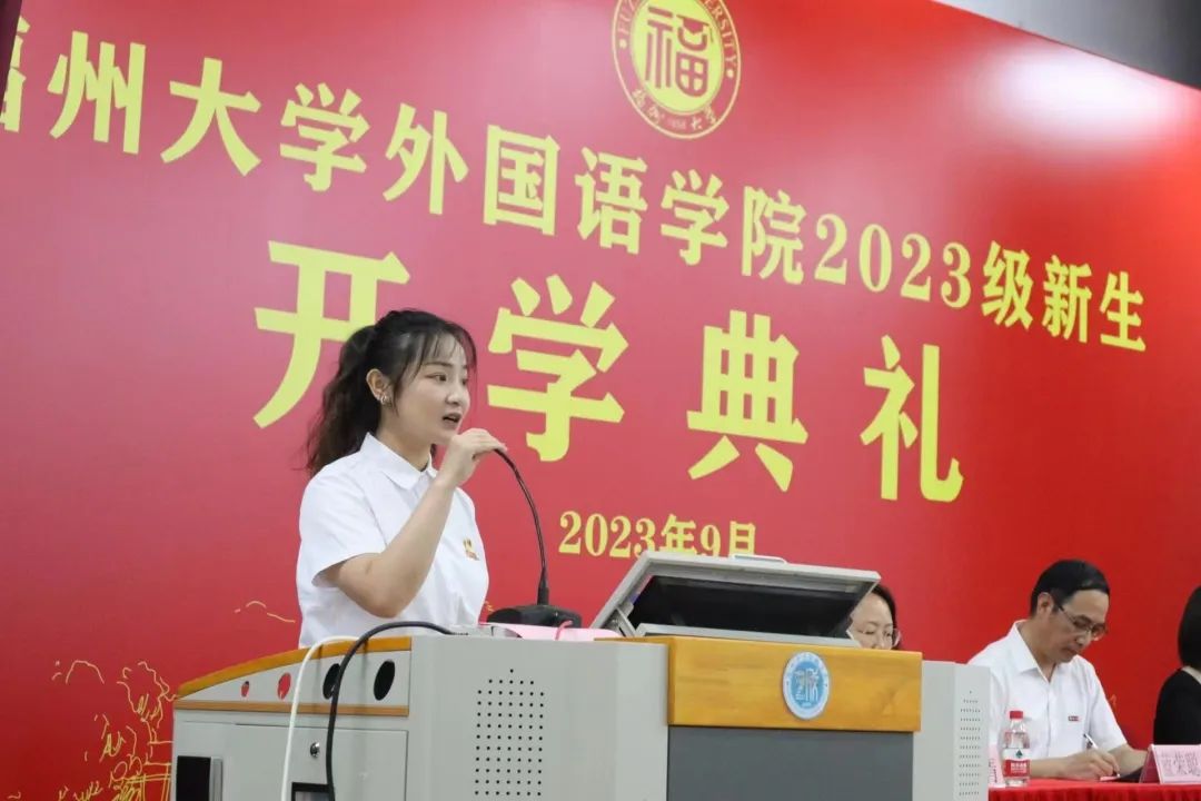 接着,本科生新生代表李依诺同学、研究生新生代表陈辰燕同学先后上台发言。李依诺同学以自己参加星火公益团队的活动为例,认为我们要保持身心健康,树立正确的价值观,保持乐观的心态和良好的生活方式,提高自身的实践能力,立志成为有理想、敢担当、能吃苦、肯奋斗的新时代好青年。陈辰燕同学则以流利的英文讲述了她在宁夏固原市支教的经历,这次经历给她留下了深刻的印象,让她更加珍惜能够在学校中提升自我的机会,更加坚定地在基层中磨练意志,锤炼品质。