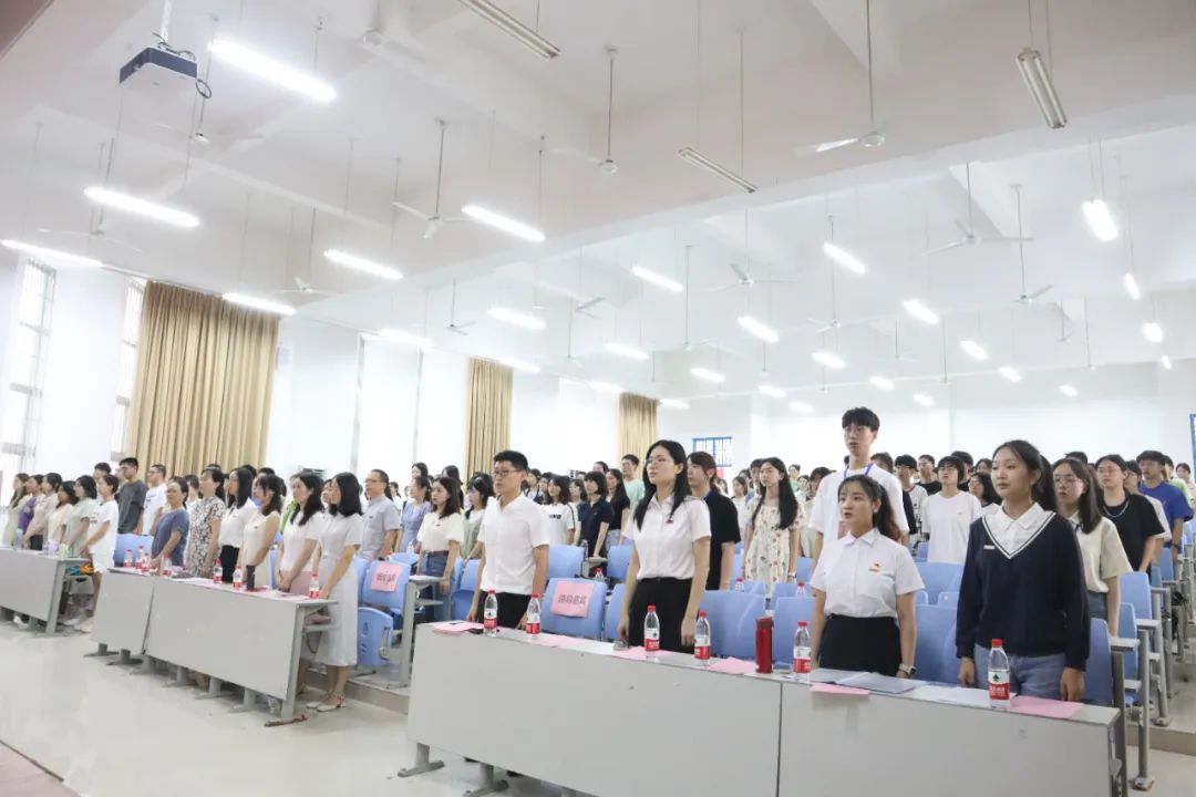 人生的序章,始于初秋,从远方而来,跨越山海,奔赴下一场诗和远方。青春的注脚在这一刻绽放。在新起点上,我们共同期待下一程灿烂。2023年9月1日下午,外国语学院2023级新生开学典礼于铜盘校区科报厅B举行。外国语学院党委书记程贞玫、院长钟晓文、院党委副书记蓝荣聪、副院长林继红、院团委副书记唐斌湖、院长助理赵婧教授、甘振翎副教授、还有各系主任、教师代表出席典礼,典礼由院党委副书记蓝荣聪主持。