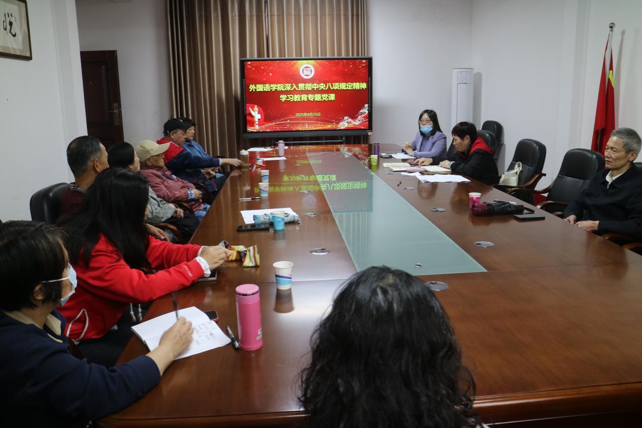 为深入学习贯彻习近平总书记关于加强党的作风建设的重要论述精神,进一步推动中央八项规定及其实施细则精神在学院落地落实,4月25日上午,学院党委书记程贞玫在校离退休教职工活动中心为学院退休党员讲授专题党课。