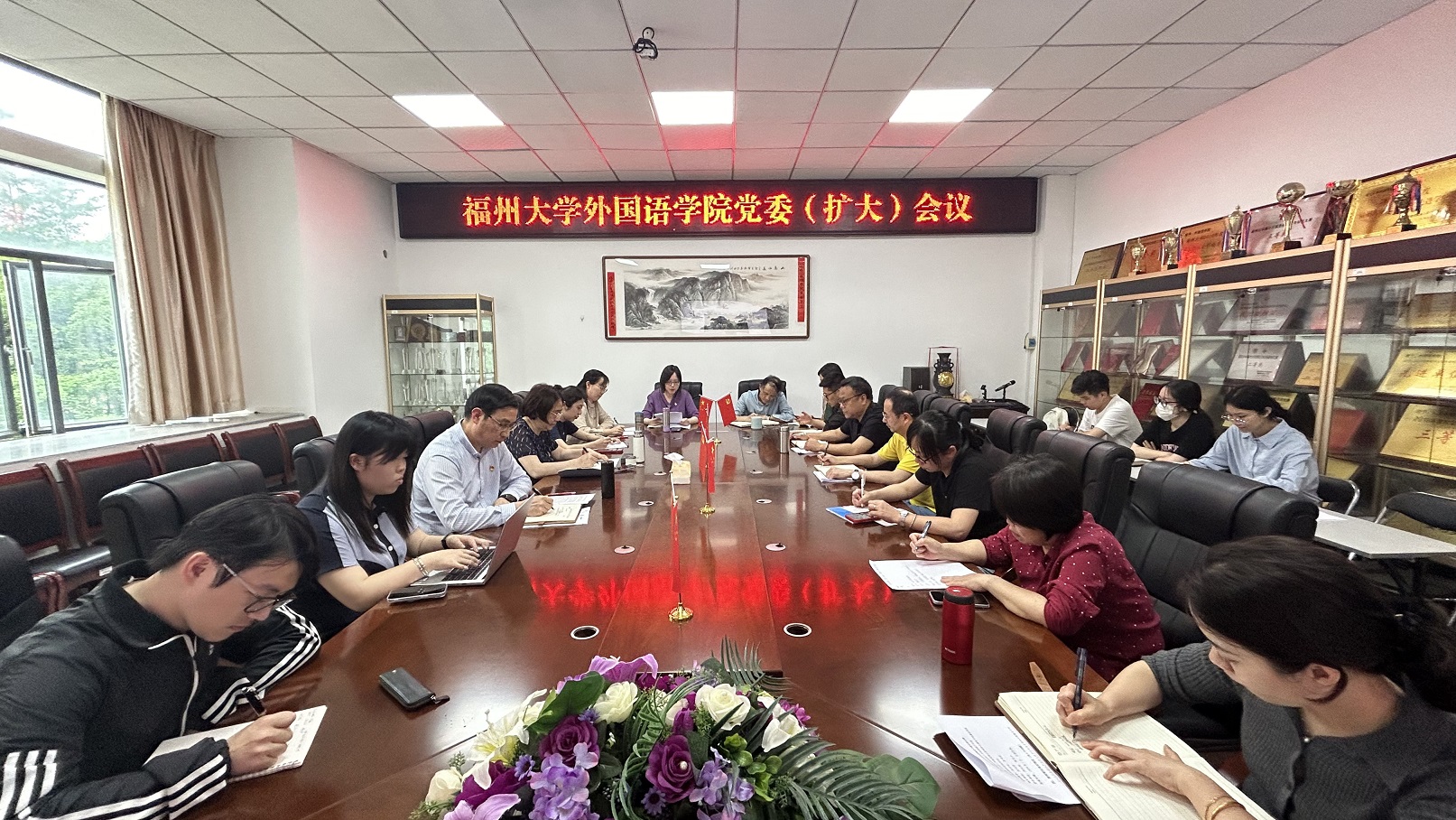 4月16日,外国语学院党委书记程贞玫主持召开学院党委(扩大)会议,传达学习习近平总书记关于党纪学习教育的重要讲话和重要指示精神,学习贯彻校党委常委会会议暨党的建设工作领导小组会议精神,研究部署学院党纪学习教育工作。学院领导班子成员、党委委员、师生党支部书记等参加会议。