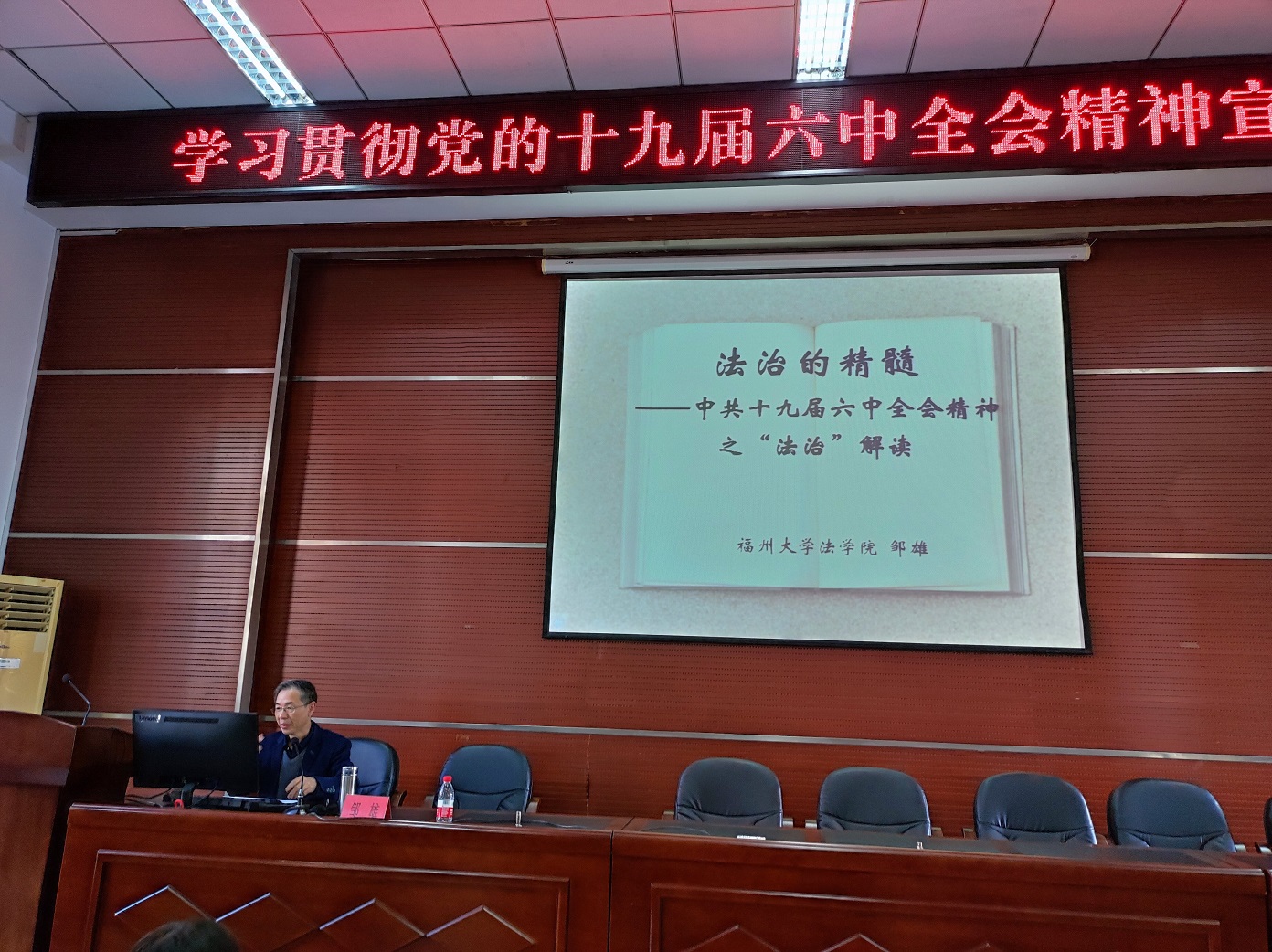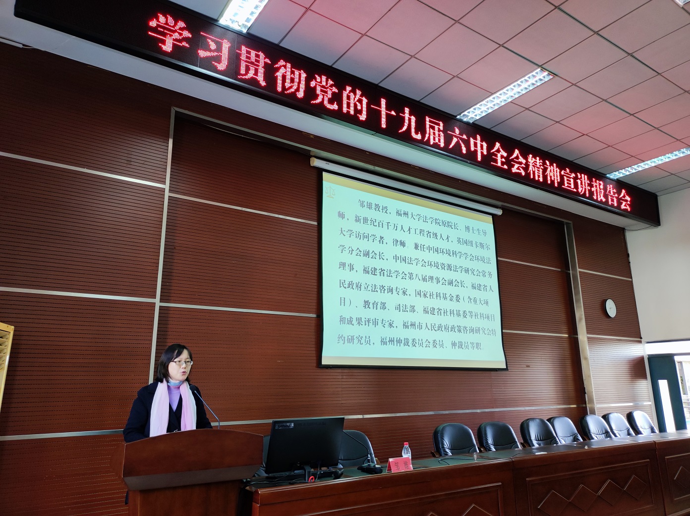 法学院博士生导师邹雄教授作专题宣讲报告。报告会由院党委程贞玫副书记主持,全体教职工党员和学生党员代表参加。