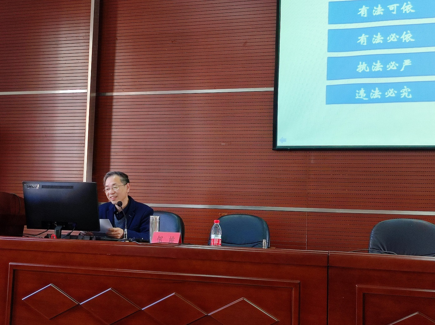 邹雄教授本场题为“法治的精髓”的宣讲报告会,围绕着十九届六中全会公报“在全面依法治国上,中国特色社会主义法治体系不断健全,法治中国建设迈出坚实步伐,党运用法治方式领导和治理国家的能力显著增强”这一主题,对比了“新老十六字方针”,从科学立法、严格执法、公正司法、全民守法等四个方面深入浅出地阐述了法治的精髓。整场宣讲报告逻辑严密、资料详实、内容丰富,对于全院师生进一步准确理解和把握党的十九届六中全会精神有很强的指导意义。