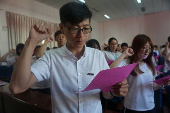 大会在庄严的国歌声中拉开序幕。首先进行新党员入党宣誓仪式。接着,院党委委员钟晓文副院长宣读表彰决定:公共外语第一教研室党支部与公共外语第二教研室党支部为院先进党支部,苏蓉等22名同志为院优秀共产党员,郑颖峰等5名同志为院优秀党务工作者。院党委委员为受表彰的集体和个人颁奖。
