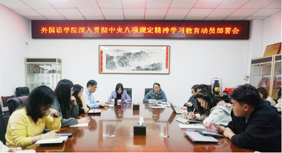 3月28日上午,外国语学院深入贯彻中央八项规定精神学习教育动员部署会在学院208会议室召开。学院领导程贞玫、钟晓文、蓝荣聪、林继红出席会议,全院师生党支部书记、机关党支部成员等参加会议,会议由党委副书记兼纪委书记蓝荣聪主持。