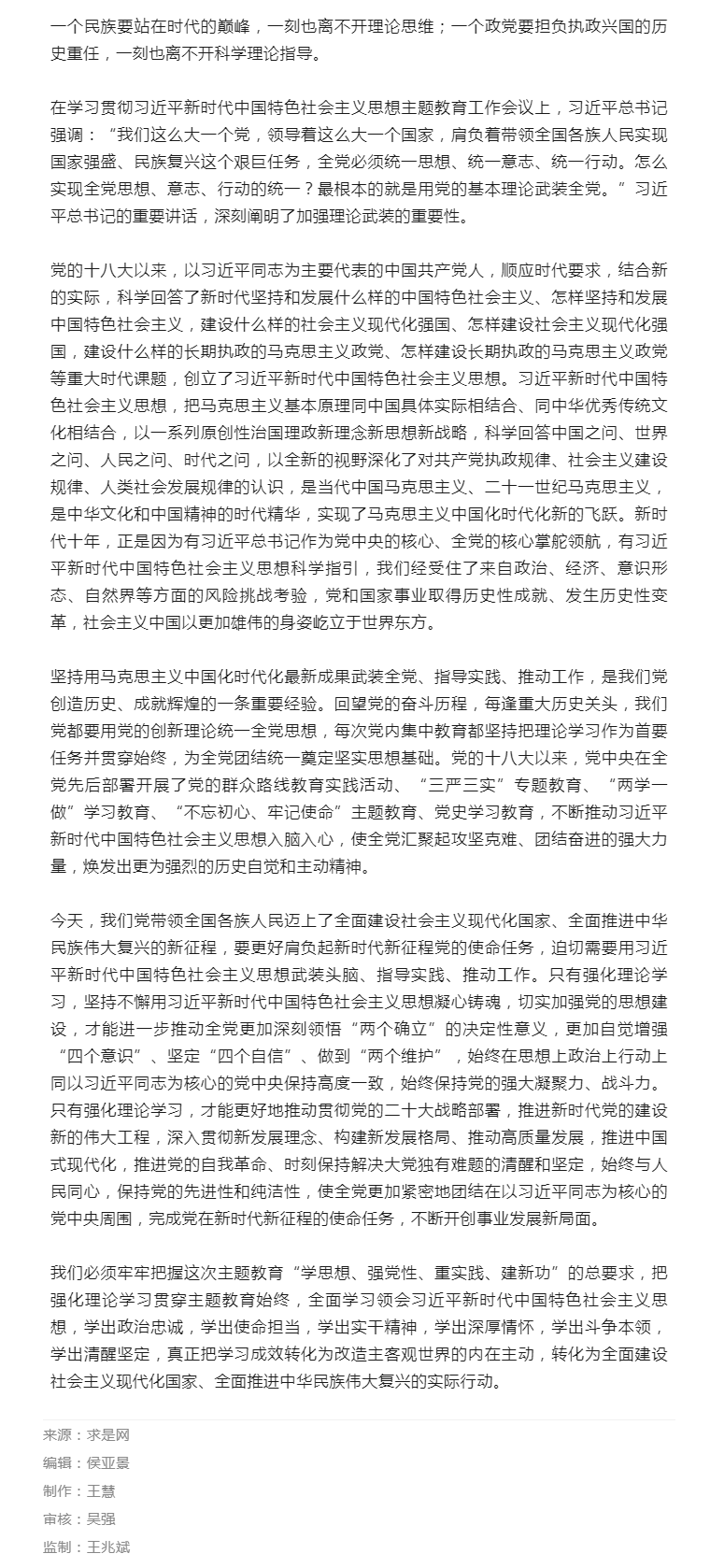 把强化理论学习贯穿主题教育始终