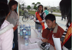 2008年3月22日,我们外国语学院107期的发展对象们参加了由外国语学院团委学生会主办的帮助永泰县葛岭中学的‘爱心助学,让爱传递’的募捐活动。从早上7点到下午6点,虽然很累,虽然下起了雨,但是想到钱是募集给葛岭中学那些勤奋而又贫困的孩子们的,觉得很值很开心。