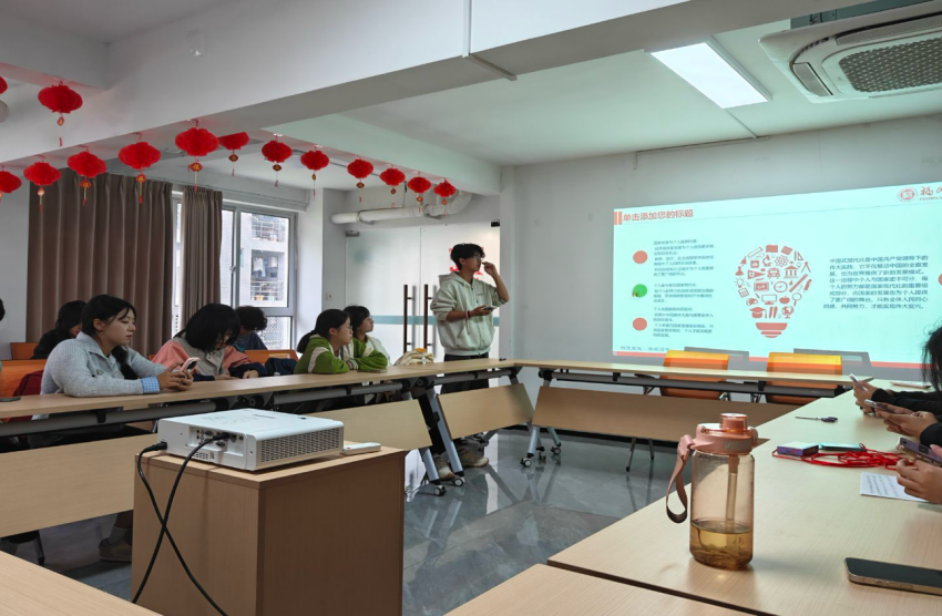 班会伊始,赵启杉同学为大家系统梳理了“中国式现代化”的宏伟蓝图。他阐释了这条基于中国国情的独特发展道路,并精炼解读了其“共同富裕”、“高质量发展”、“生态文明”等六大核心内涵。