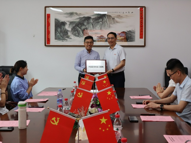 外国语学院蓝副书记为实习基地建立进行授牌,为下一步校企深入合作打下坚实基础。