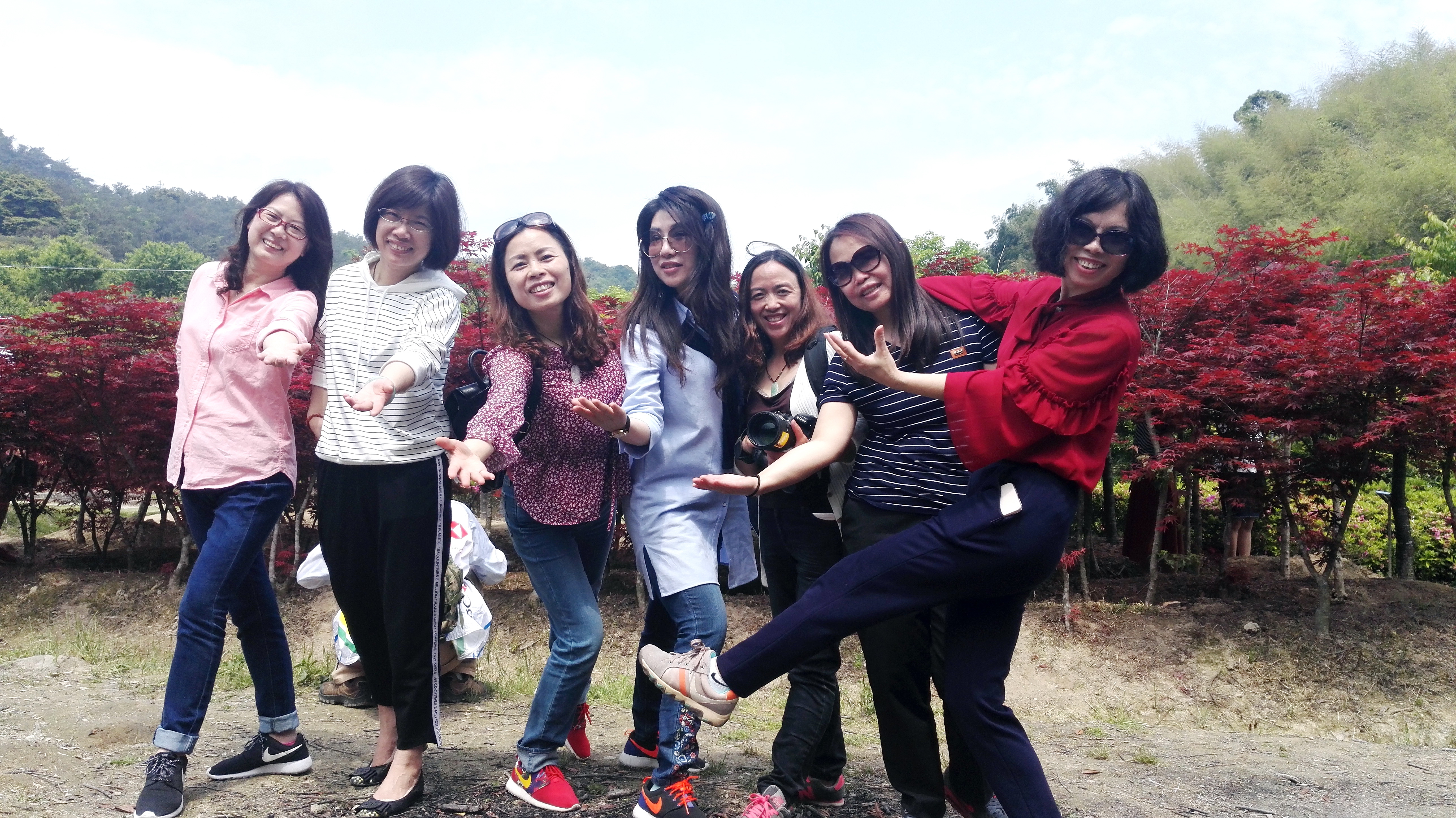 院工会组织院教职工来到了福州北峰鹅鼻村快乐园,这里赏花正当季!步入园区,惊艳大家眼球的首先是绵延道路两侧,延伸至漫山遍野的杜鹃花海,引得爱美的女教工们纷纷驻足,留下倩影。远处,成片的日本红枫如晚霞般红遍山野,与漫山盛开的杜鹃争芳斗艳。谁说只有深秋可赏枫?林间飞翠鸟,鸣叫山涧间;绿地跑小羊,温驯不惧人;水中游红鲤鱼,绕膝来讨食。同去的几位外教老师对这世外世外桃源般的快乐园非常感兴趣,好奇地问这问那,非常惬意。在午餐间,大家都感叹:院工会组织的这次春游,舒适又休闲,让老师们得以放松平日繁忙教学中疲惫的身心,在美丽的花与叶的自然世界里漫游,绽放开心的笑容,增进彼此的交流。正是:粉绯醉红满目笑,不负春光快乐园!