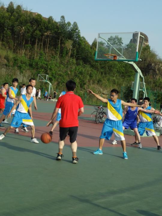 5月2日下午, 学院举行了师生篮球友谊赛。由学院党委副书记、工会主席刘旺带领教工篮球队与学生篮球队在篮球场举行了一场别开生面的比赛。