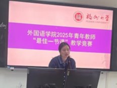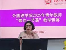 竞赛结束后,评委们进行了专业点评。戴力芬老师肯定了青年教师语言能力和教态方面的优势,同时指出部分教师课堂互动交流不足,强调教师要加强与听众的沟通,把控好课堂节奏。郑文老师提醒教师要充分考虑授课对象的特点,深入挖掘课程思政元素,避免生硬说教。叶青老师建议利用动画、链接等丰富教学形式,提升教学手段的多样性。姚玲老师提出可适当引入AI互动,如用deepseek做词汇练习,建议完善教案的教学理论支撑,合理设置教学板块过渡,做好课程总结。